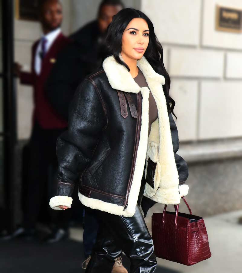 Everything about the Kim Kardashian Black Street Style Shearling Jacket screams that it was designed in the fashion diva's image, from the style to the way it appears. Kris Jenner's daughter is a jewel in the fashion world. Whether it's a basic net dress or a balloon dress, Kim Kardashian is the one who can wear any type of clothing. When people saw the actress wearing the Aviator Jacket, it received much attention and quickly became a fashion statement.